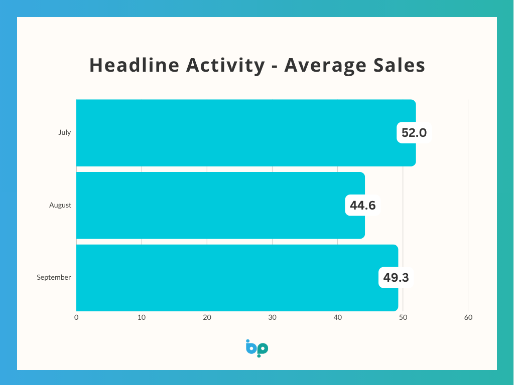 Headline activity picked up after a sluggish August. Average leads rose from 95.3 to 105.6, a strong 10.8% increase that brings volumes closer to July’s benchmark of 110.3. This rebound suggests that consumer appetite has not disappeared, even in the face of economic uncertainty.