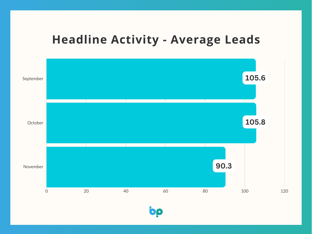 Lead volumes remained relatively flat between September (105.6) and October (105.8), a minor 0.2% increase that points to consistent early-autumn demand. However, the drop to 90.3 in November represents a more pronounced 14.6% decline, reflecting the familiar seasonal slowdown as households divert attention toward Christmas and delay non-essential decisions until the New Year.