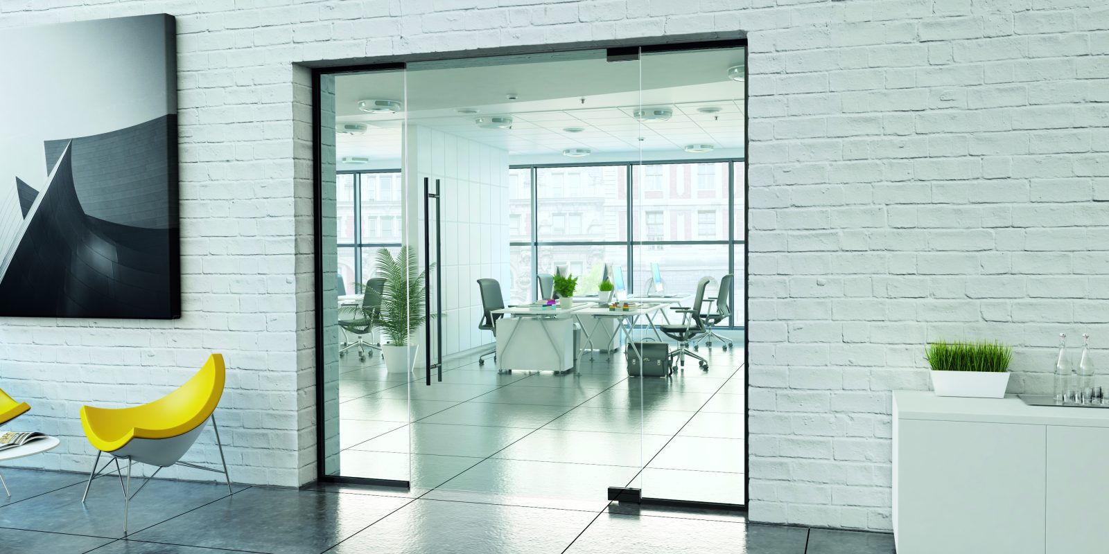 The Alva self-closing patch fitting enables quick installation without the need for time-consuming floor recesses. The entire hydraulic system for the self-closing function is housed in a slim fitting, and the fitting is fixed to the floor with screws using a base plate.