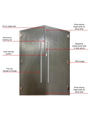 Security is reinforced further on the slave door, which is fitted with extra-strong finger bolts at both the top and bottom. The doors are supported by fully adjustable SFS hinges.